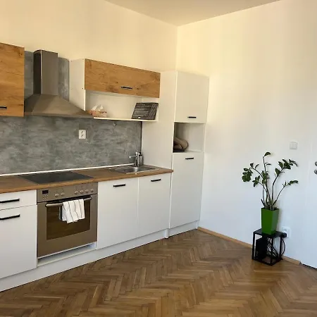 Gästen steht eine Küchenzeile mit einem Kühlschrank und einem Herd für die Selbstversorgung zur Verfügung. Das Apartment Byt Podoli liegt etwa 650 Meter von der Bushaltestelle Na Hrebenech entfernt.